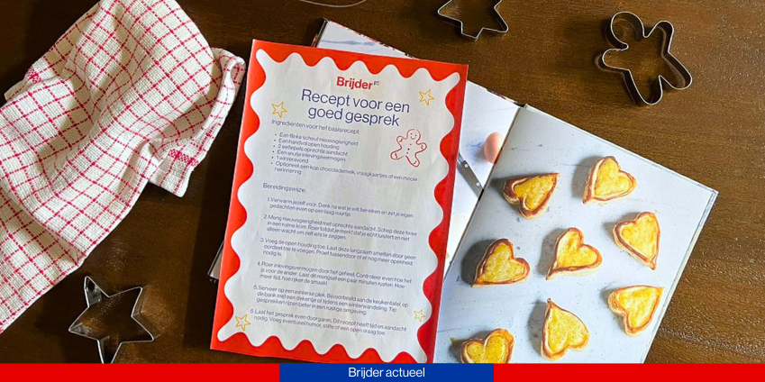 Dit recept vraagt wat oefening om alle ingrediënten op de juiste manier samen te brengen. Soms lukt het meteen, soms brandt het gesprek een beetje aan of valt het stil. Dat hoort erbij. Elk gesprek is anders en hoeft niet perfect te zijn om waardevol te zijn. Zeker in de donkere decemberdagen kan een moment van echte aandacht het verschil maken.